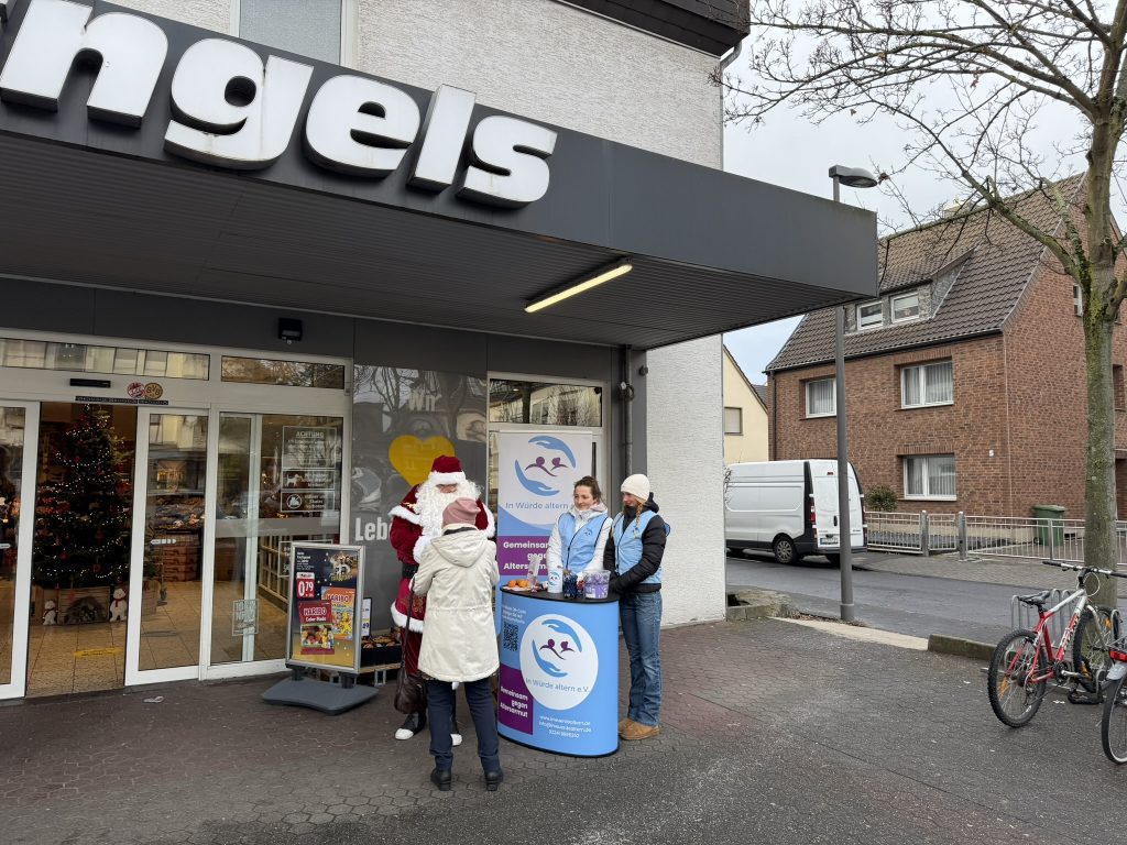 Heute, am Nikolaustag, haben wir mit viel Engagement und guter Stimmung unseren Infostand vor dem Edeka aufgebaut, um auf ein Thema aufmerksam zu machen, das gerade in der Winterzeit viele ältere Menschen betrifft: Altersarmut und Einsamkeit.